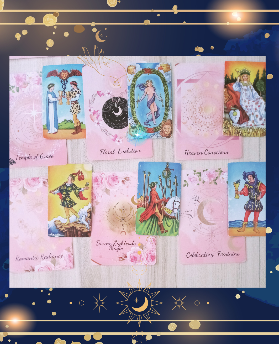 Before your readings, I connect with guides angels, and engage in a heartspace meditation. My reading space embodies a romantic theme for love readings, featuring oracle & Tarot & gypsy cards with a pink aesthetic. I select decks for your session with intuition and care.